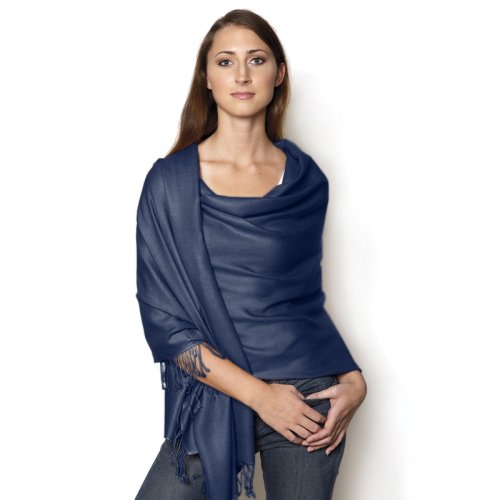 This finely woven Cashmere Pashmina Shawl will keep you warm and looking incredibly polished whatever the occasion. The natural qualities of the Cashmere Pashmina & Silk provide warmth, softness and durability while also adding elegance and beauty. Expertly woven with only the finest Cashmere Pashmina & Silk, this Pashmina Shawl can be used all year and for any occasion. Due to the amazing versatility & practicality of this Pashmina Shawl, anytime is a good time - day and night, while traveling and at home, formal events and casual outings, as a wrap, shawl and scarf. A timeless, must-have piece that you can always carry with you. 70% Cashmere Pashmina 30% Silk. 80" length x 28" width. Fringed ends. Imported. Dry Clean.
